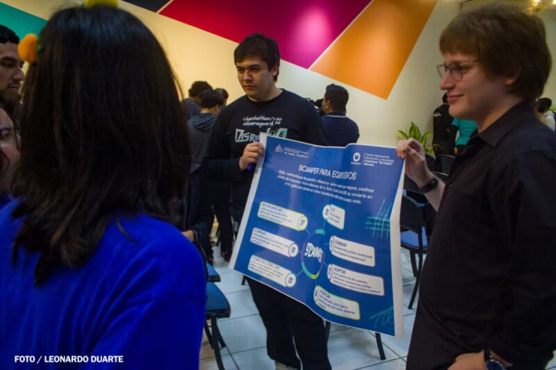 Durante el encuentro, los participantes realizaron dinámicas creativas bajo la metodología Scamper, con el objetivo de fortalecer ideas, mejorar futuras rutas creativas y compartir sus experiencias a través de un storytelling sobre su proceso de innovación y trabajo en equipo.