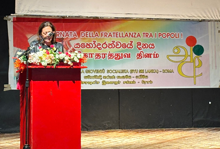 Nuestra Embajada en Italia participó, por invitación de la Juventud Socialista de Sri Lanka, en la jornada “Hermandad entre los Pueblos”, un espacio de encuentro entre movimientos y comunidades que luchan por la Soberanía, la Justicia Social y la Paz frente al imperialismo y las nuevas formas de dominación global.