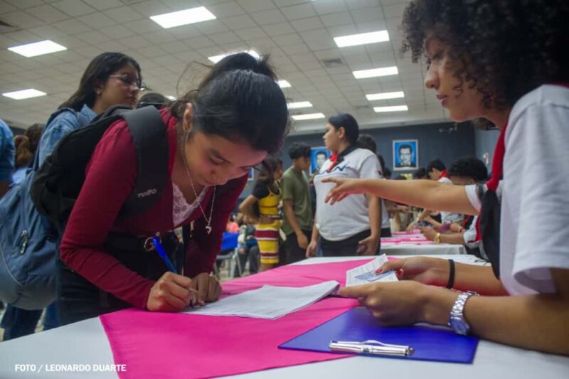 El presidente de UNEN-UNAN Managua, Francisco Ríos, destacó que solo en el recinto Rubén Darío se están entregando más de 3,000 becas a jóvenes de distintos programas académicos, como parte de la restitución de derechos que impulsa el Gobierno Sandinista.
