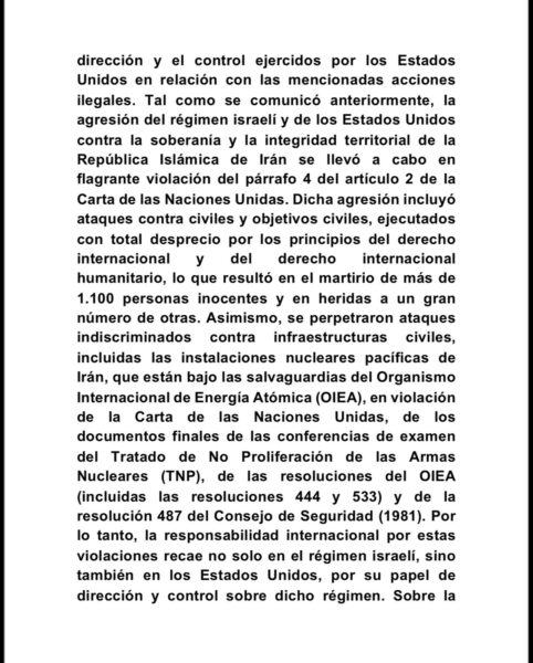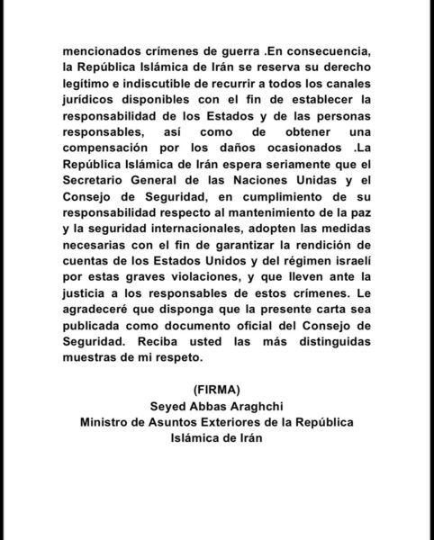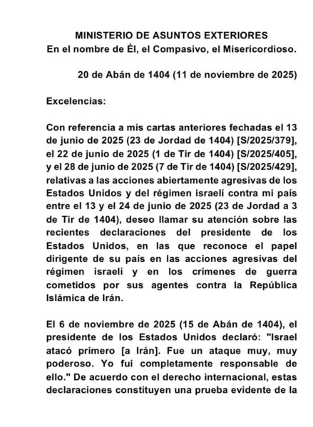 Carta del Canciller de Irán dirigida al Secretario General de la ONU y al Presidente del Consejo de Seguridad de la ONU