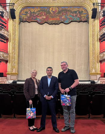 Con el objetivo de estrechar lazos y explorar formas de colaboración respetuosas con instituciones panameñas, nuestra Embajada en este hermano País, en nombre del Buen Gobierno de Reconciliación y Unidad Nacional y Pueblo, realizó visita de cortesía y trabajo al Teatro Nacional de Panamá, ubicado en el casco antiguo de la Ciudad de Panamá y considerado el epicentro de las artes escénicas panameñas.