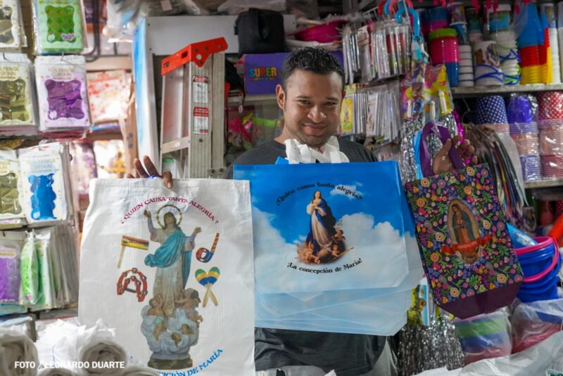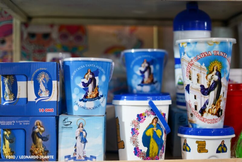 David Ortiz Fonseca, también del mercado, resaltó la preparación para las celebraciones de la Virgen de diciembre. “Contamos con tacitas, vasos, globos y abanicos, a precios accesibles para la gente que celebra el 7 de diciembre. Por ejemplo, nuestras tacitas salen a 25 córdobas cada una o 23 córdobas la docena, y los vasos jumbo a 25 córdobas, con descuentos por compras al por mayor”, indicó.