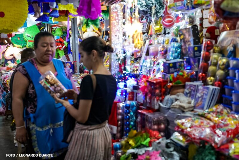 Tania García, comerciante del mercado, destaca que cuentan con todo lo necesario para estas fiestas: piñatas, pastoras, pelotas navideñas, lucecitas, cortinas decorativas, caramelos y artículos de plástico. “Ofrecemos variedad y precios rebajados para que el cliente se vaya satisfecho. Tenemos opciones económicas para los niños y todo tipo de decoraciones navideñas”, aseguró.