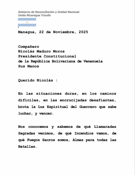 Remitimos Mensaje de Saludo y Felicitación del Copresidente-Comandante Daniel, y CoPresidenta Compañera Rosario, al Compañero Nicolás Maduro Moros, Presidente Constitucional de la República Bolivariana de Venezuela, en ocasión de su Aniversario Natal.