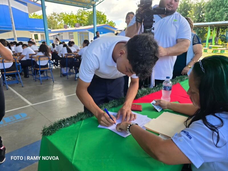 Por su parte, Baxter Téllez, presidente nacional de la Federación de Estudiantes de Secundaria en el Distrito V, destacó que este año se entregan más de 63,000 bonos a bachilleres a nivel nacional.