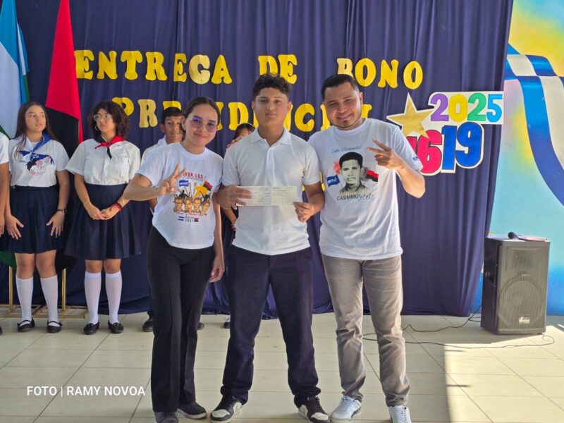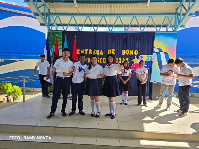 La entrega del Bono Presidencial 2025 reafirma el compromiso del Gobierno de Reconciliación y Unidad Nacional con la educación pública, gratuita y de calidad, garantizando que miles de jóvenes nicaragüenses continúen avanzando con esperanza, nuevas oportunidades y el respaldo permanente de un modelo que prioriza el bienestar y el futuro de las familias.