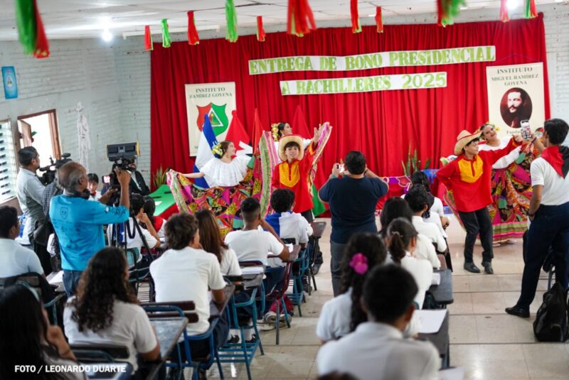 El Gobierno de Reconciliación y Unidad Nacional entregó el Bono Presidencial 2025 a 276 bachilleres del Instituto Miguel Ramírez Goyena, reafirmando su compromiso con la educación gratuita y el acompañamiento a las familias nicaragüenses.