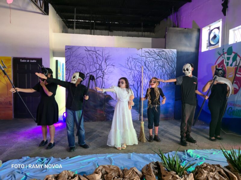 Una de las protagonistas de la obra, Briana Valentina Montenegro Escobar, de 10 años, compartió su emoción por interpretar a La Llorona. “Aquí he aprendido muchos valores y muchas cosas en teatro. Me gusta el maquillaje, los peinados, vestirme con diferentes trajes y expresar mis emociones. Teatro no es solo actuar, también es expresar lo que sentimos”, comentó.