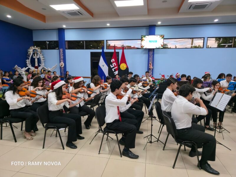 Desde el Auditorio Elena Arellano, el Ministerio de Educación dio inicio a las celebraciones navideñas con el concierto “Luz y Esperanza”, protagonizado por la Orquesta Elemental y la Orquesta Inicial de la Escuela Alfredo Barrera, junto al Coro Estudiantil de Managua.