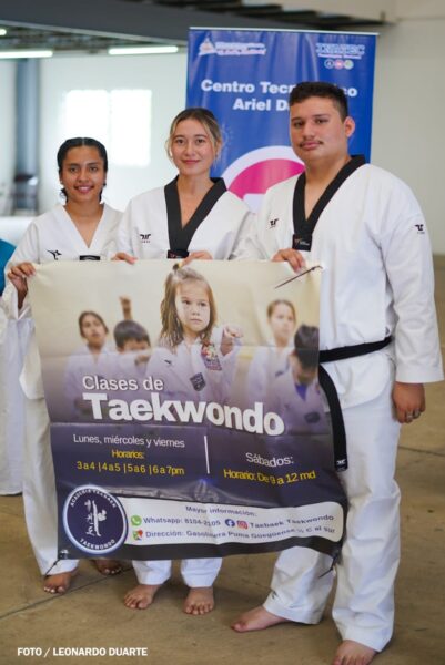Durante el evento también participó Juan José Peñaloza, profesor de taekwondo, quien invitó a niños, jóvenes y adultos a integrarse a las clases de esta disciplina. Señaló que la formación deportiva se basa en valores, disciplina y respeto, enfatizando que “el objetivo no es la violencia, sino el crecimiento personal y la representación del país en eventos nacionales e internacionales”.