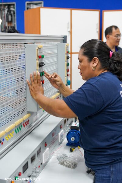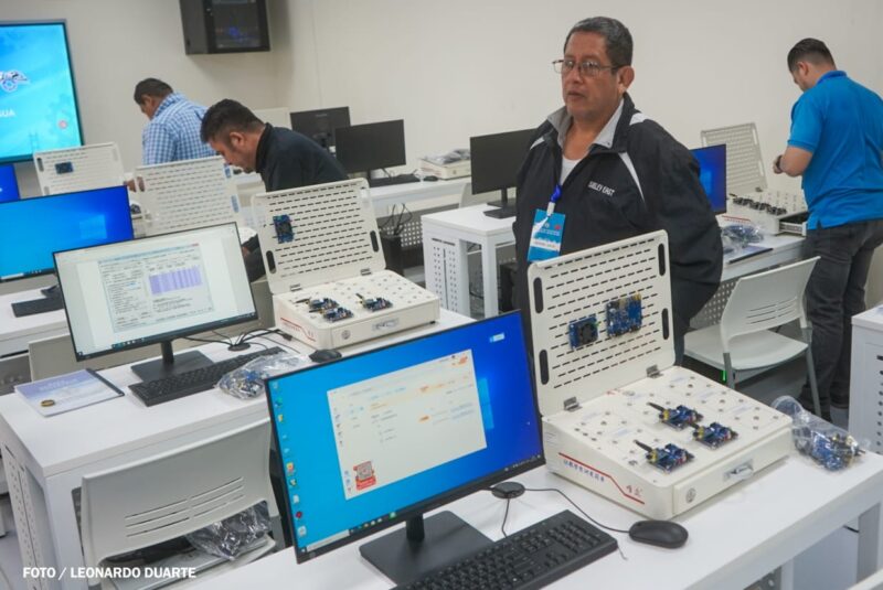 Durante esta etapa, especialistas chinos trabajan junto a maestros y técnicos nicaragüenses en la instalación, configuración y pruebas del equipamiento que permitirá una enseñanza práctica y moderna. Los ambientes están dotados con tecnología de última generación que fortalecerá la formación en áreas como Internet de las Cosas, Automatización Eléctrica, Integración Mecatrónica y Manufactura Industrial, ampliando las oportunidades de aprendizaje para los protagonistas.