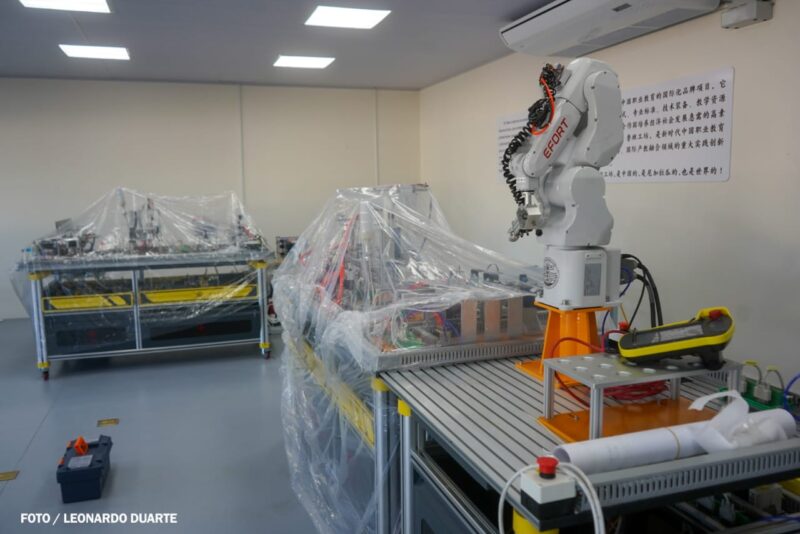 El taller cuenta también con dos aulas en línea. Estos espacios serán utilizados para que los estudiantes aprendan la parte teórica de las clases y están equipados para sostener videoconferencias con especialistas chinos. De esta manera, tanto estudiantes como docentes podrán reforzar sus conocimientos sin límites geográficos.