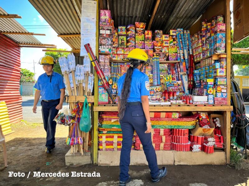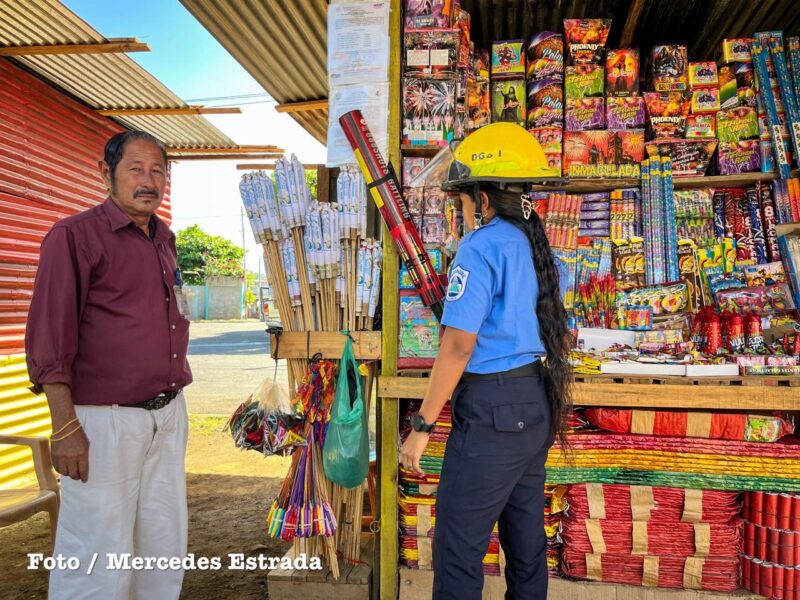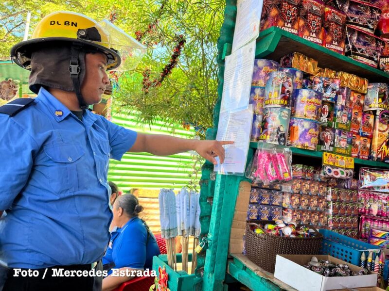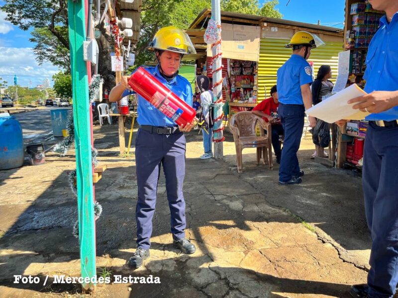 Bomberos Unidos del Ministerio del Interior realizaron este viernes una jornada de inspección en los puestos de venta de pólvora ubicados en la Rotonda La Virgen, en Managua, como parte del Plan Pólvora 2025, que se ejecuta simultáneamente desde las 233 estaciones de bomberos a nivel nacional.