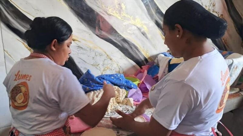 El Ministerio para la Promoción de Emprendimientos acompañó a mujeres emprendedoras dedicadas a la elaboración de la tortilla de maíz, fortaleciendo sus procesos artesanales y semiindustriales, compartiendo opciones de diversificación de tortillas, como la elaboración de tortillas con distintas variedades de maíz, aportando sabores, colores para presentaciones a futuro, así como el aprovechamiento del excedente en productos como chips, todo en correspondencia con las preferencias del mercado, las normas sanitarias y el uso de materias primas locales.