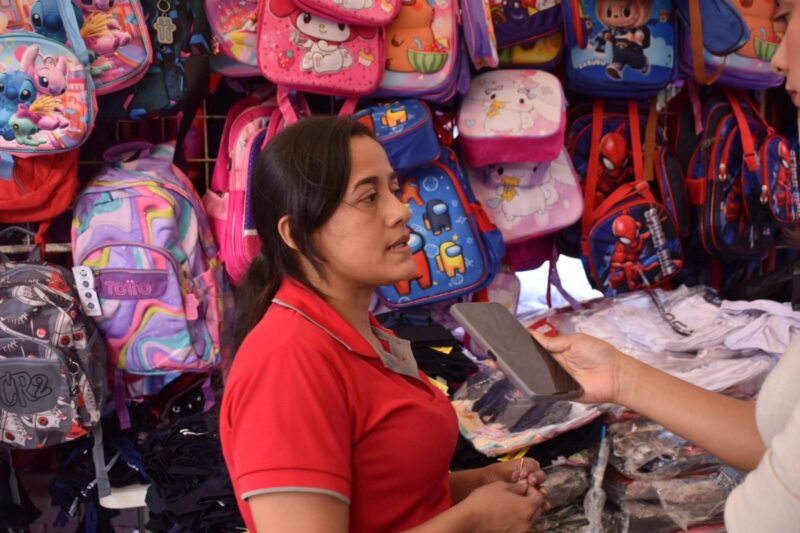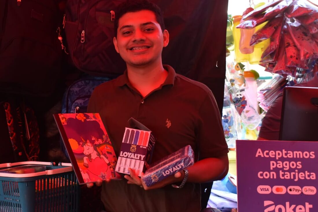 Uno de los comerciantes es Manuel Maltés, quien explicó que cuentan con una línea completa de artículos escolares, desde cuadernos y mochilas hasta zapatos para todas las tallas, tanto para varón como para mujer.