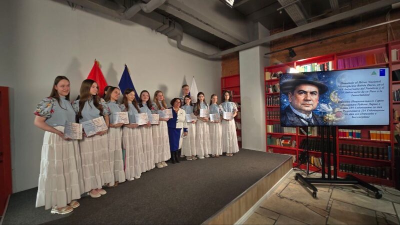 En el marco de este homenaje se llevó a cabo la premiación de los ganadores de los “Certámenes de Declamación e Ilustración de la Jornada Dariana 2026”, organizados por la misión nicaragüense en Moscú. Durante dos semanas en el salón de lectura de la Biblioteca Rudomino se exhibirán al público las ilustraciones infantiles de la Jornada Dariana 2026 en la Federación de Rusia.