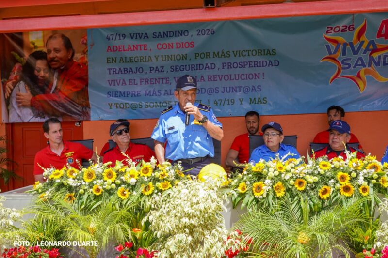 Asimismo, subrayó la expansión del sistema de bomberos en Nicaragua en los últimos años, señalando que actualmente el país cuenta con 235 estaciones distribuidas en los 153 municipios, lo que ha permitido reducir significativamente los tiempos de respuesta ante emergencias y mejorar la atención a la población.