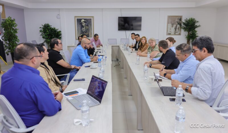 Este viernes 20 de febrero, los Hermanos Comunicadores de la República de Belarús que visitan Nicaragua, la Compañera Periodista Lizaveta Tertel y el Hermano Camarógrafo Iván Martynovich, sostuvieron un Encuentro de Intercambio con los Coordinadores y Directores de los Medios Sandinistas de Nicaragua y recorrieron los Canales de Televisión Sandinistas.