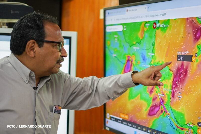 En cuanto al viento, Baca explicó que comenzará a predominar la componente norte, con ráfagas que podrían alcanzar entre 30 y 35 kilómetros por hora, principalmente en el Caribe Norte, Caribe Sur y el sur del Pacífico. Esta condición generará un aumento en el oleaje, con alturas estimadas entre 2 y 2.5 metros en ambos litorales, por lo que se recomienda precaución a las embarcaciones pequeñas y menores.