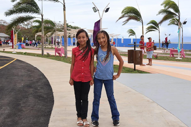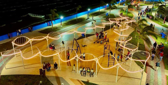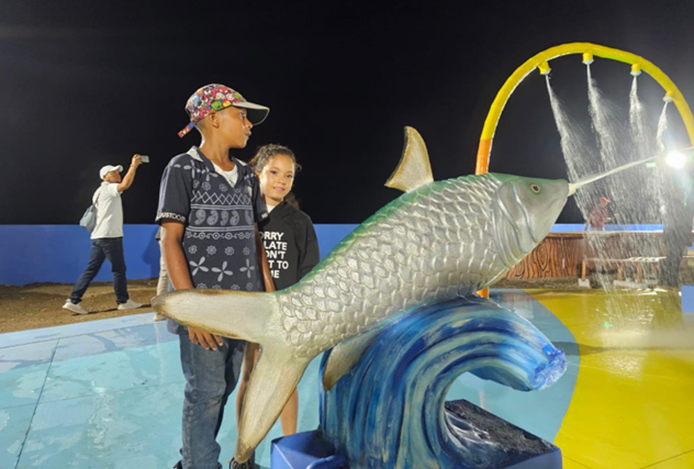 El malecón cuenta con áreas para la recreación de las familias, juegos infantiles y un parque acuático, todos ambientados con una temática propia del municipio.
