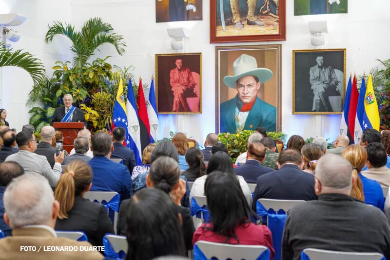 “La Venezuela de Bolívar, de Chávez, y la Nicaragua de Sandino, somos pueblos hermanos. Pueblos que siempre luchamos, que nunca nos rendimos y que defendemos nuestra independencia, soberanía y el derecho a forjar nuestro propio destino, libres de injerencias externas”, expresó el canciller.