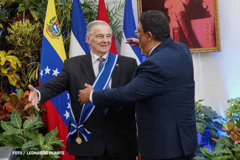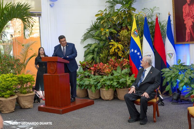 En ese sentido, destacó que el reconocimiento se otorga al embajador venezolano por sus valiosos aportes al fortalecimiento de los vínculos de amistad, solidaridad y cooperación entre Nicaragua y Venezuela.