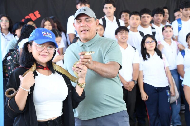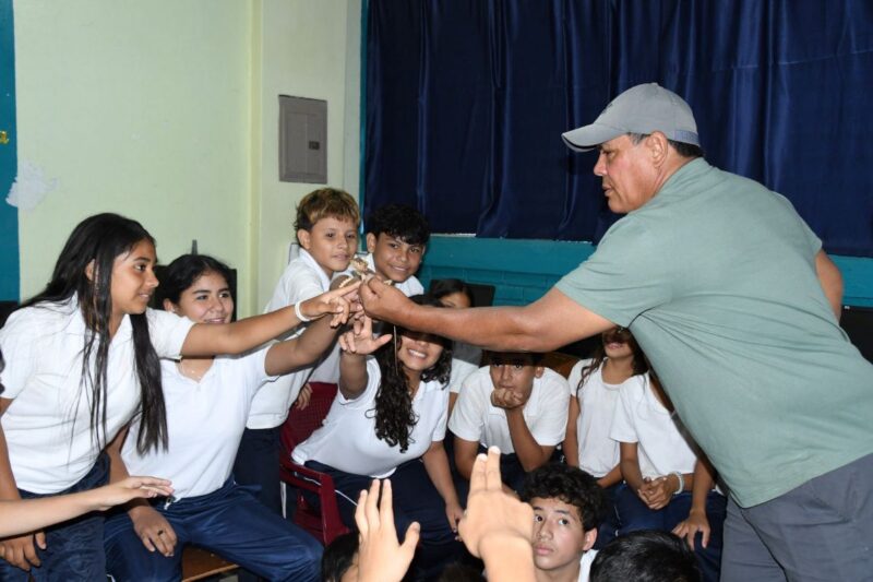 La jornada se organizó en seis grupos, en los que se explicó la importancia de la fauna silvestre, seguida de una exhibición de culebras, pichetes y geckos provenientes del zoocriadero FAUTESA.