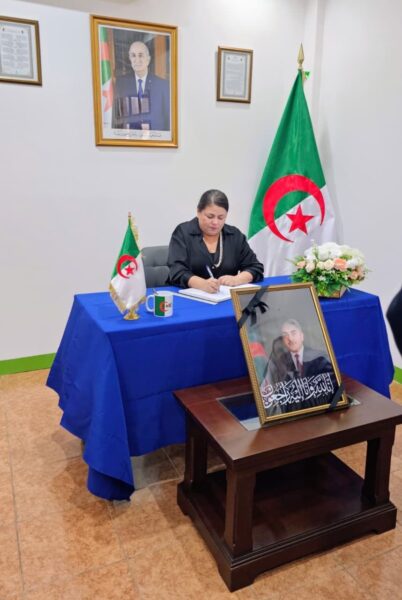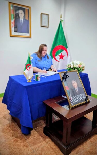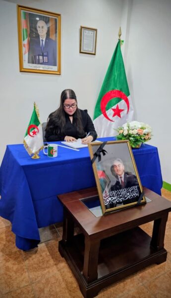La mañana de este Miércoles, 1 de abril de 2026, una Delegación del Gobierno de Reconciliación y Unidad Nacional de la República de Nicaragua visitó la Embajada de la República Argelina Popular y Democrática, para estar presentes en la Apertura del Libro de Condolencias por el fallecimiento del Compañero Liamine Zeroual, Ex Presidente de ese Hermano País.
