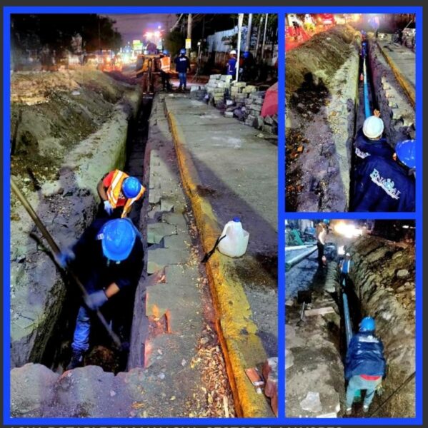 Trabajando en Horario Nocturno, para no afectar las actividades comerciales y el alto flujo vehicular de la zona, las obras que se ejecutan incluyen la reubicación de 1,600 metros de tuberías de conducción y conexiones domiciliares y comercial; que al finalizar en el próximo mes de junio, disminuirán las pérdidas de agua y mejorarán el abastecimiento a unas 400 familias de los barrios Laureles Norte, Villa Reconciliación y comerciantes del Mercado Mayoreo.