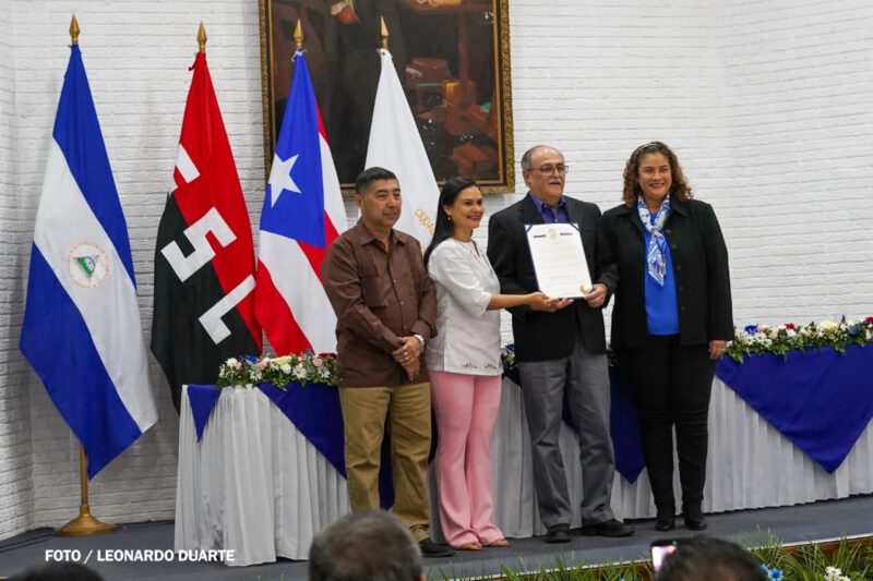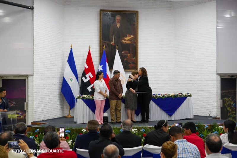 Tras recibir el reconocimiento, Doris Ávila Talavera expresó su agradecimiento, destacando el amor de su padre por Nicaragua y su entrega total a la obra evangelística.