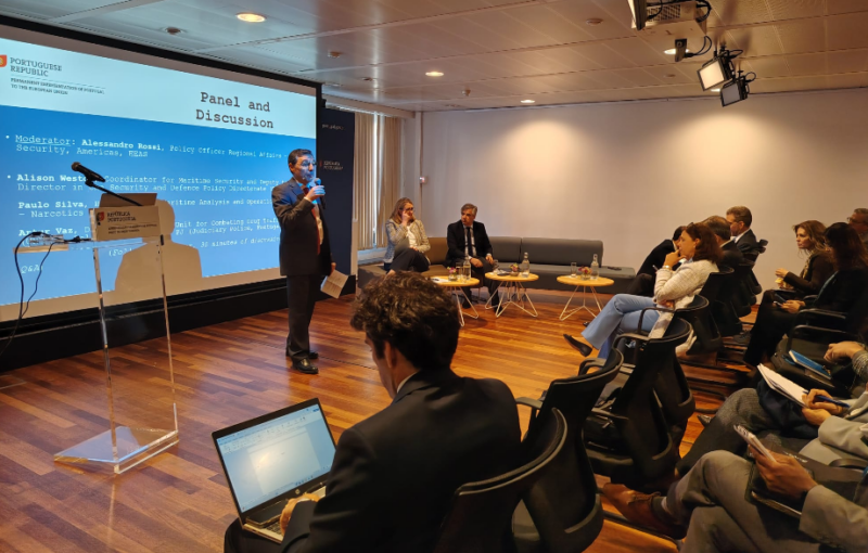 La Misión de Nicaragua ante la Unión Europea participó en el evento “Seguridad Marítima y Cooperación contra el Tráfico de Drogas entre la Unión Europea y América Latina y el Caribe”, realizado en Bruselas y organizado por la Representación Permanente de Portugal ante la Unión Europea. El encuentro reunió a representantes de instituciones europeas y de los Estados miembros de la CELAC, así como agencias especializadas, en un espacio de intercambio sobre los desafíos del narcotráfico por rutas marítimas, la seguridad portuaria y la cooperación internacional.