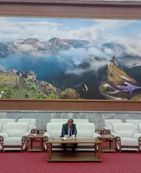 En el salón ubicado en la parte superior del Acto Triunfal, el Embajador de Nicaragua en la RPD de Corea, compañero Manuel Modesto Munguía Martínez, firmó el Libro de Visitas, donde expresó el saludo de nuestra representación diplomática, en nombre de nuestro Gobierno y de nuestros Copresidentes, el Comandante Daniel Ortega Saavedra y la Compañera Rosario Murillo Zambrana.