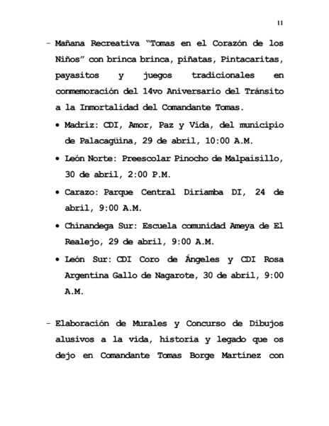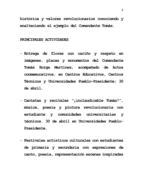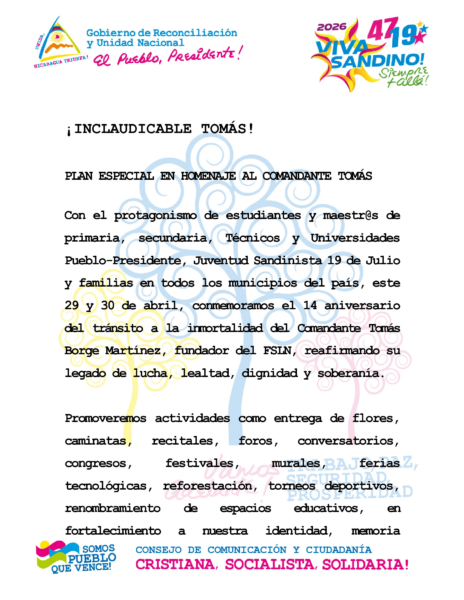 Plan Especial en Homenaje al Comandante Tomás. ¡INCLAUDICABLE TOMÁS!