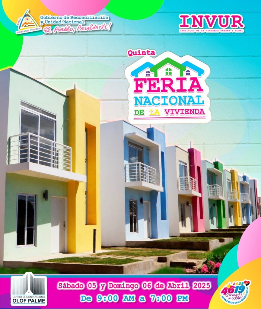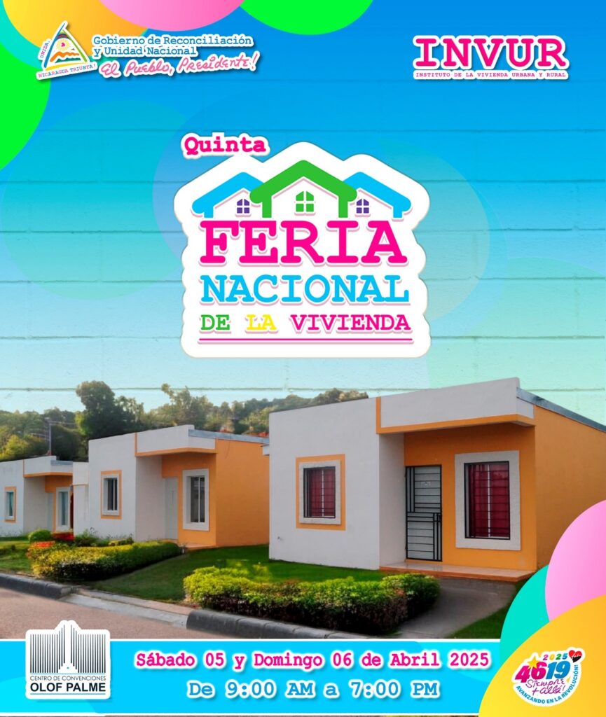 En nuestra Nicaragua, Bendita y Siempre Libre, el Gobierno de Reconciliación y Unidad Nacional a través del INVUR, desarrollará el Sábado 05 y Domingo 6 de Abril, la “Quinta Feria Nacional de la Vivienda” en el “Centro de Convenciones Olof Palme”.