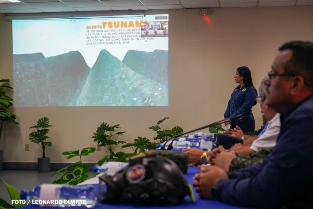La simulación se centró en un escenario de sismo de magnitud 7,9 a 35 km frente a las costas del Astillero, seguido de una alerta de tsunami en el Pacífico nicaragüense, con olas entre 4 y 10 metros de altura que impactarían las costas entre las 10:38 y 10:46 am.