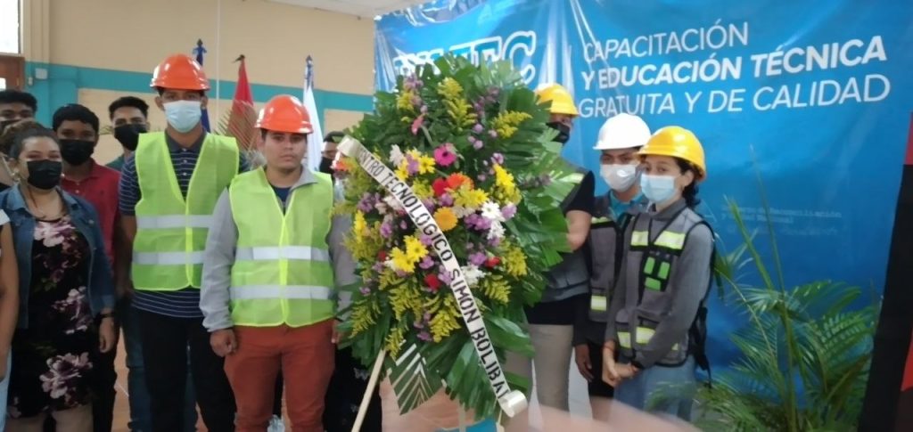 Los estudiantes del Centro Tecnológico Simón Bolívar de Managua conmemoraron el 86 aniversario del natalicio del Comandante Carlos Fonseca Amador con una feria donde se presentaron proyectos elaborados con materiales reciclados.