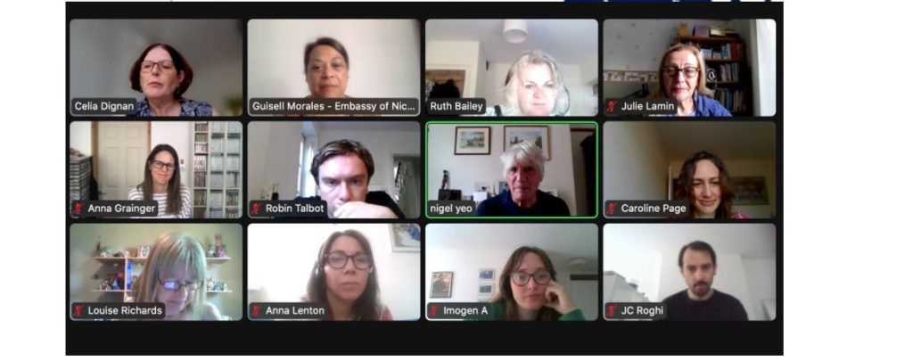 El Gobierno de Reconciliación y Unidad Nacional, a través de su Embajada en Reino Unido, participó en un fraternal e informativo encuentro, con doce Maestros y Maestras británicos, que visitarán Nicaragua del 28 de Julio al 10 de Agosto de este año, para estrechar las relaciones de Solidaridad con nuestro País y entre el gremio de Educadores, intercambiar experiencias y fortalecer la cooperación sobre formación Docente y al que también asistieron la Compañera Louise Richards, del Grupo de Acción de la Campaña de Solidaridad con Nicaragua que les acompañará en esta visita y representante del Sindicato de Educadores del Reino Unido (NEU).