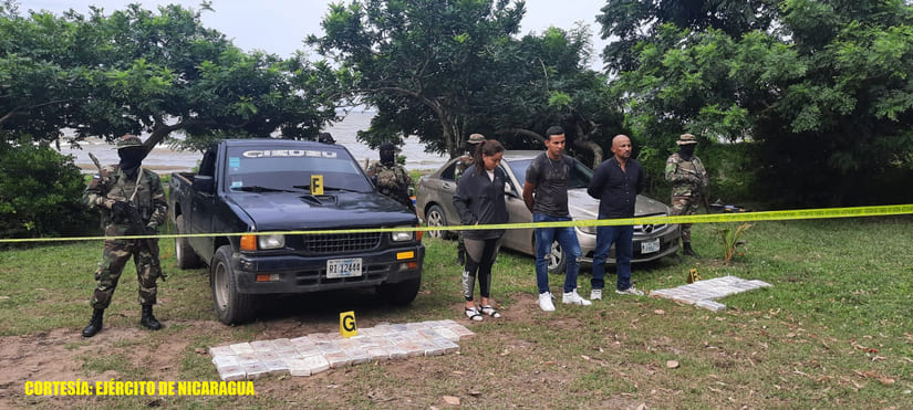 El Ejército de Nicaragua consecuente con el lema de que “Somos el Pueblo mismo uniformado trabajando en su propio beneficio”, en cumplimiento a la Estrategia de Estado “Muro de Contención” y del Plan de Protección de las Fronteras Estatales, el 15 de julio de 2022, a través de servicio operativo del 4 Comando Militar Regional, en el sector del río Sapoá, municipio de Cárdenas, departamento de Rivas, retuvo a 3 ciudadanos quienes a bordo de 2 vehículos trasladaban en su interior 61 paquetes rectangulares de cocaína, con un peso de 72 kilos con 445.2 gramos.