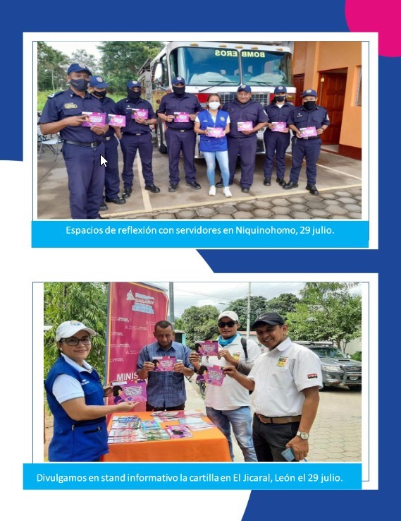 Desde que se inició el Plan de Presentación de la Cartilla, el 21 de Julio 2022, ésta se ha compartido y reflexionado con más de 200 mil Familias de todo el País, a través de diferentes actividades, reuniones, pláticas, visitas, aprovechando los espacios de afluencia natural de las Familias, charlas, reuniones comunitarias y espacios institucionales, en Barrios y Comunidades, Universidades, Centros Educativos, abordando sus derechos, leyes y mecanismos para la prevención de la violencia y el femicidio.