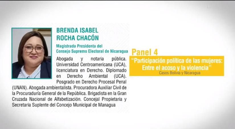 La Compañera Magistrada Brenda Rocha, expuso sobre la participación política de las mujeres en Nicaragua; realizó un recorrido por las políticas, leyes y programas impulsados por el Gobierno de Reconciliación y Unidad Nacional, GRUN, para la equidad y la complementariedad en todos los ámbitos sociales, económicos y electorales.