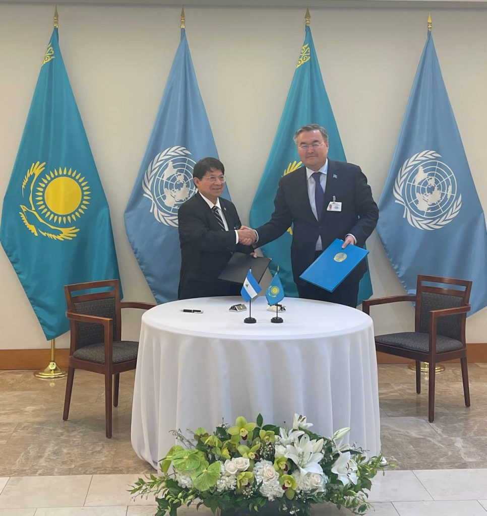 El Compañero Denis Moncada Colindres, Ministro de Relaciones Exteriores, firmó con el Señor Mukhtar Tileuberdi, Ministro de Relaciones Exteriores de Kazajistán, un Acuerdo de Libre Visado entre nuestros dos países, en el marco de la 77 Asamblea General de las Naciones Unidas en Nueva York.
