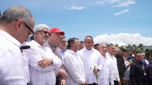 El presidente de Colombia, Gustavo Petro, acudió al paso fronterizo acompañado de su comitiva, que se encontró en el Puente Internacional con las autoridades venezolanas que acudieron al frente de la delegación venezolana.