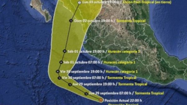 La Conagua advirtió que Orlene tiene el potencial de convertirse en huracán y si se mantiene su trayectoria pronosticada golpearía las costas del estado de Sinaloa el domingo 2 de octubre próximo.