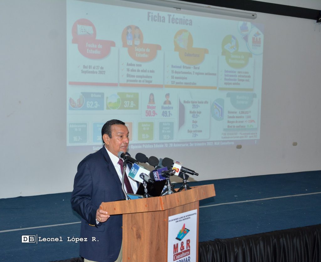 M&R consultores presentó los resultados del Sistema de Monitoreo de la Opinión Pública SISMO edición 70, correspondiente al tercer trimestre del año 2022, el cual reflejo que el 79.9% de nicaragüenses les genera esperanza el Gobierno Sandinista.