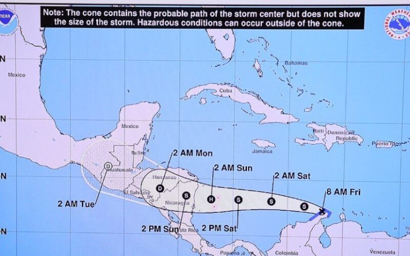 “No descartamos que pueda reducir nuevamente la velocidad de traslación, por lo tanto, estamos haciendo los cálculos que estaría aproximando a Nicaragua, el sábado por la noche o la madrugada del domingo”, resaltó Baca.