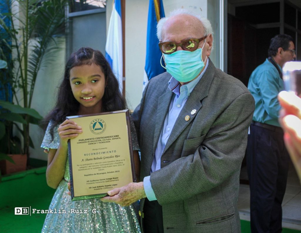 La niña Shayra Belinda González, agradeció al Parlamento Centroamericano, por hacer posible el concurso de poesía, Rubén Darío 2022.