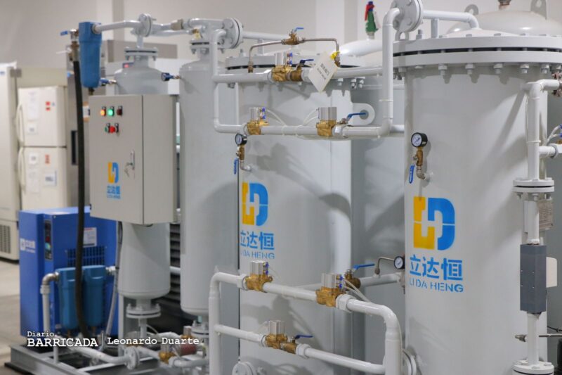 El doctor Carlos Sáenz, explicó que la Planta Productora de Nitrógeno Líquido es un espacio “donde separa el nitrógeno del oxígeno y lo va transformando a un nitrógeno de forma de gas y después lo transforma en líquido”.