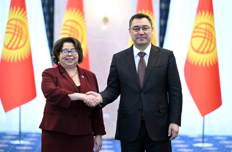 La Compañera Alba Azucena Torres Mejía, Embajadora Extraordinaria y Plenipotenciaria de la República de Nicaragua ante la Federación de Rusia, presentó Cartas Credenciales al Presidente de la República de Kirguistán, Sadyr Japarov.