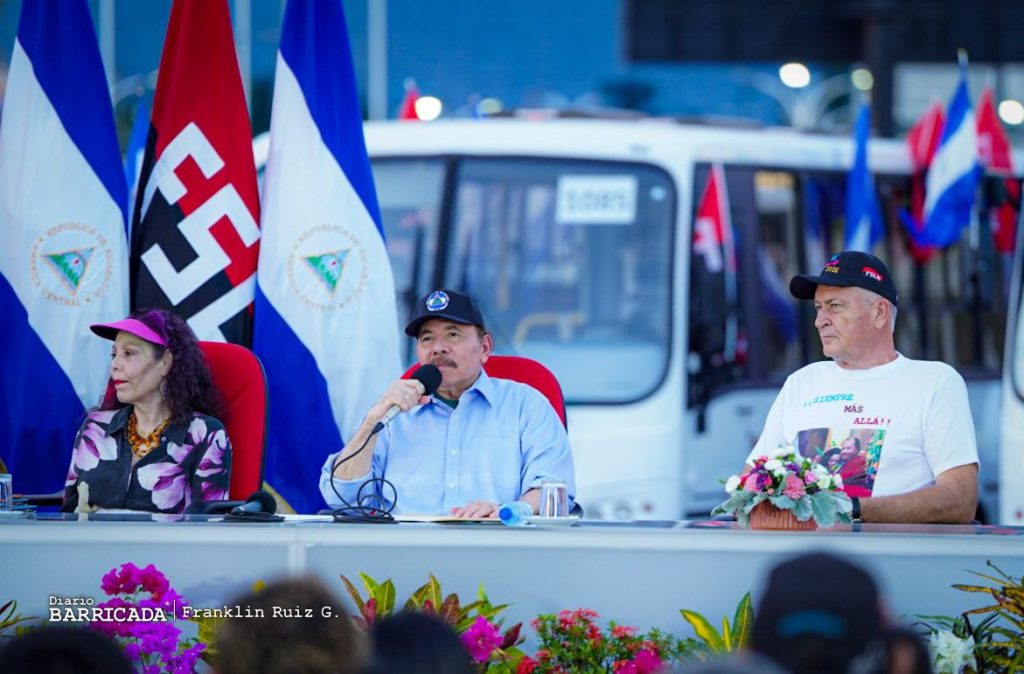 El Comandante Daniel Ortega y la Vicepresidenta Rosario Murillo, participan del acto de entrega del primer lote de 150 autobuses rusos que llegaron a Nicaragua, [...]