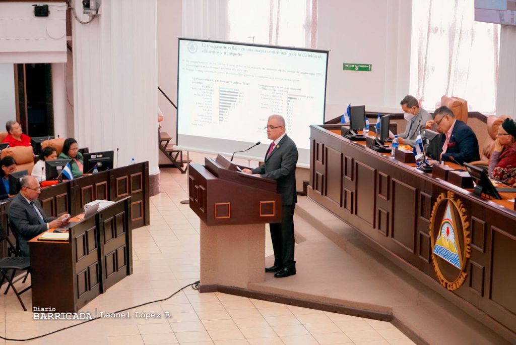 El presidente del Banco Central de Nicaragua (BCN), Ovidio Reyes, presentó ante el plenario de la Asamblea Nacional, el informe sobre los aspectos relacionados con la estabilidad económica y perspectivas visualizadas para el 2023.